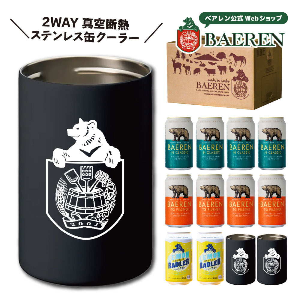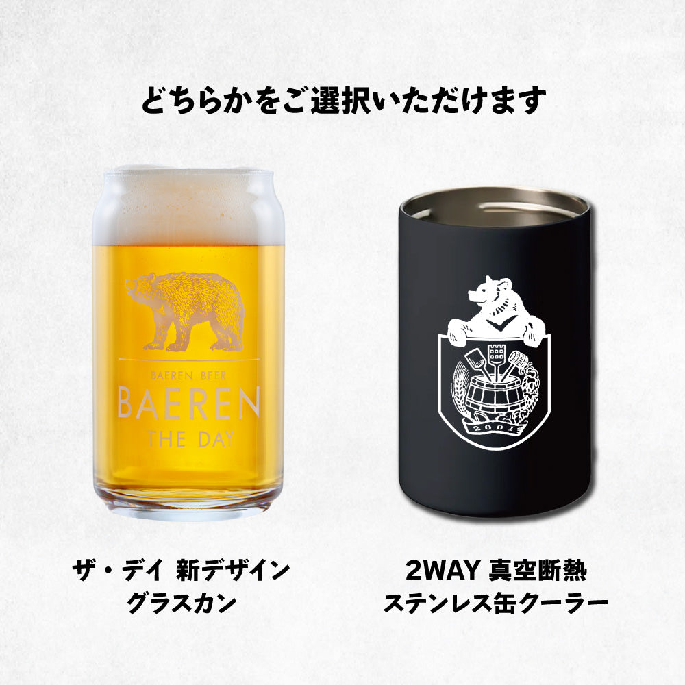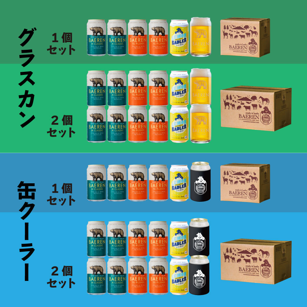 ベアレンの人気ビアグッズ、ステンレス缶クーラーかグラスカンが選べる楽しい缶ビール飲み比べセットです。誕生日やビール好きの友達へのプレゼントにぴったり!1個入りか2個入りを選べるので、カップルやご夫婦への贈り物にもおすすめです。