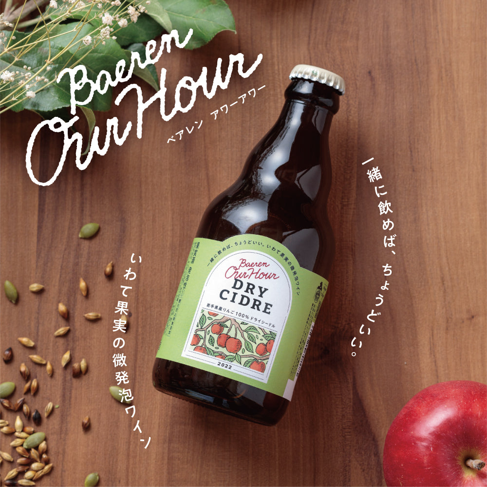 一緒に飲めば、ちょうどいい。いわて果実の微発泡ワインブランド、「Our Hour」から、岩手県産りんご100%のドライシードル。 1本に岩手のりんご2個分。地元農家から直送されたりんごを丁寧に搾って造りました。贅沢な果実味とドライな味わいのシードルです。保存料、着色料不使用でりんご本来のフレッシュな味わいをお楽しみいただけます。