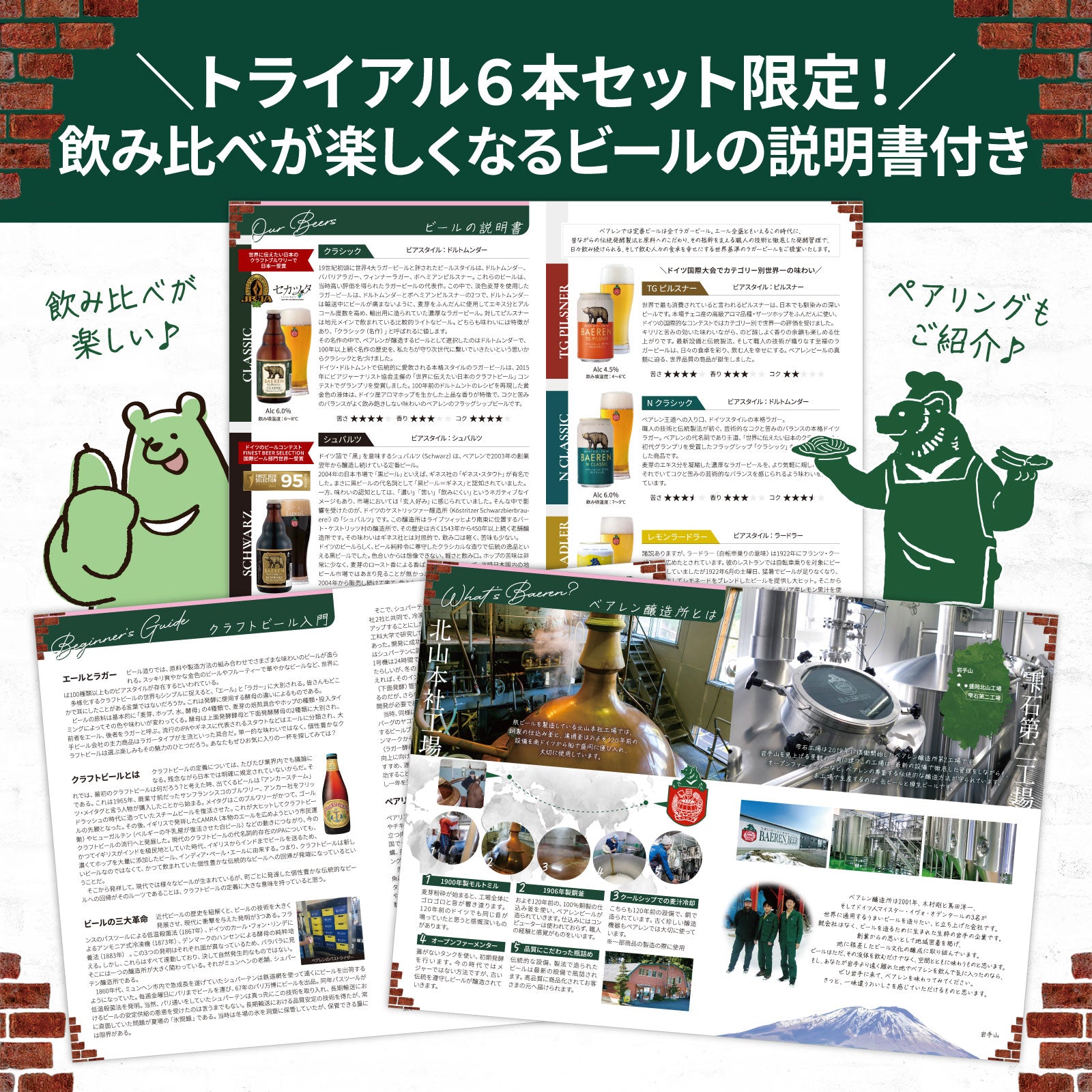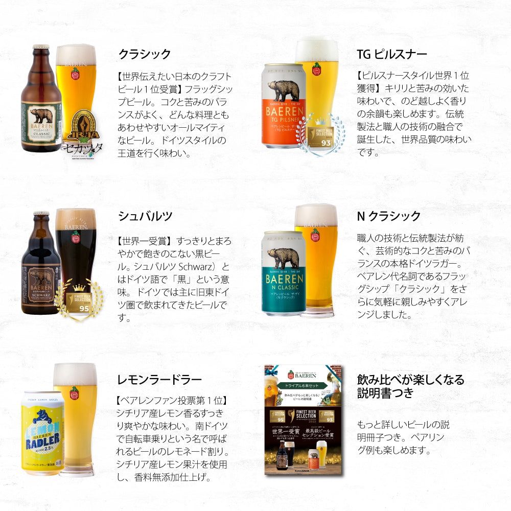 世界一&日本一受賞ビール入り。ベアレンの定番ビール5種と説明書が入ったお試しセットです。