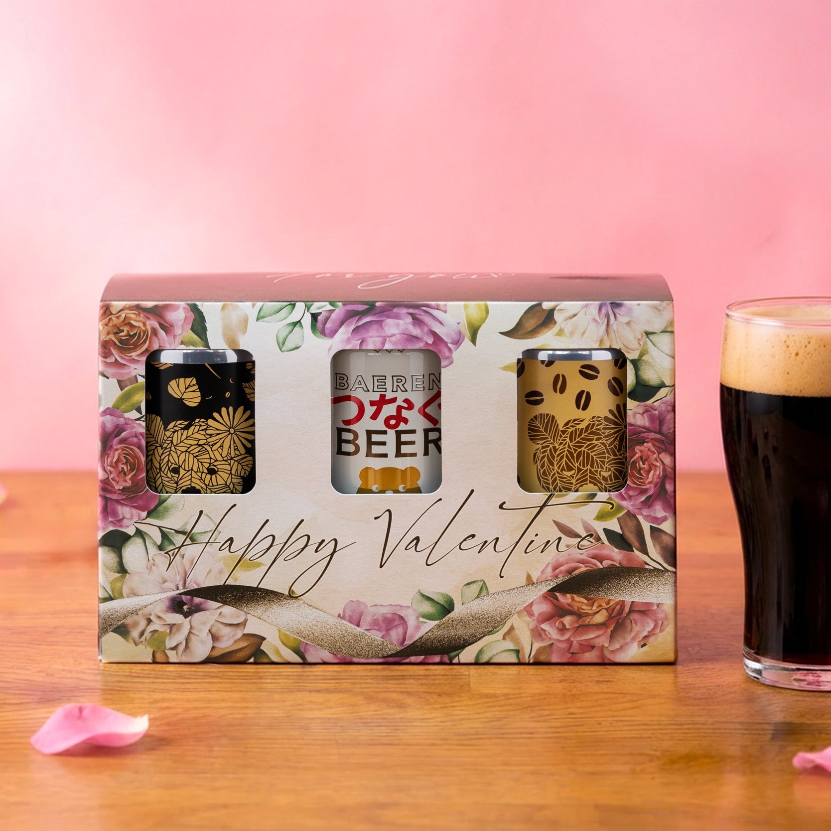 バレンタイン専用缶3本ギフト箱にてお届けいたします。